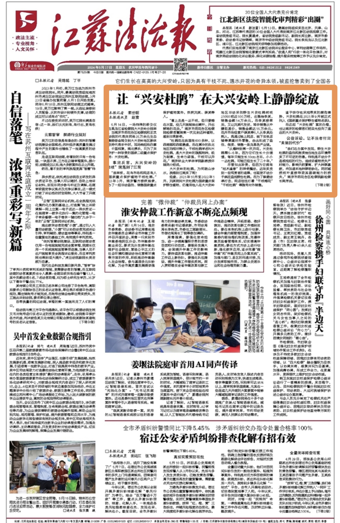 “千里有缘一花牵,检法携手护杜鹃。”南京市检察院第七检察部副主任何林生有感而发,“‘兴安杜鹃’公益诉讼案的办理就是一个跨区域司法保护的成功样本。”