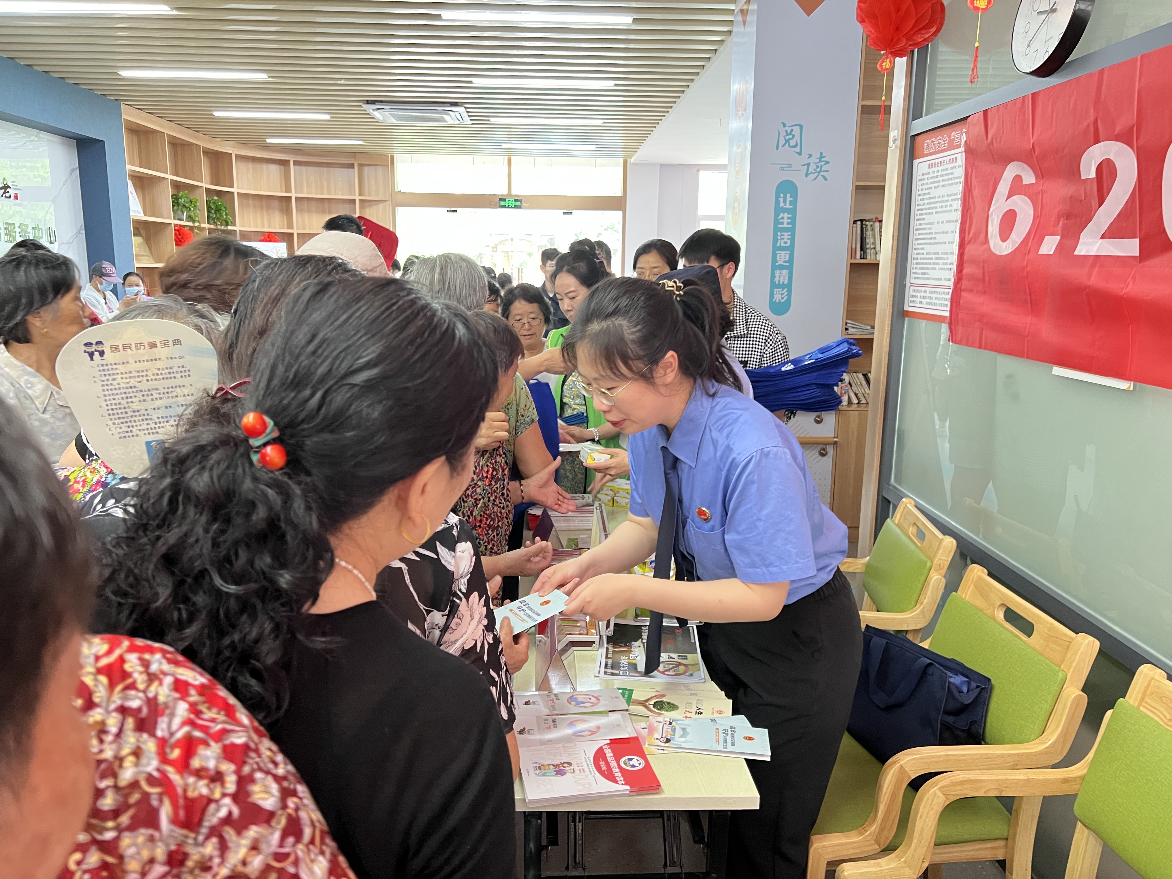 26日上午,雨花台区院联合区禁毒办在雨花台区雨花街道丁蔷社区开展“禁毒日”现场咨询活动。雨花台区院干警为广大居民送上宣传册,并向咨询的群众耐心普及禁毒知识,巩固社区“防毒安全线”。